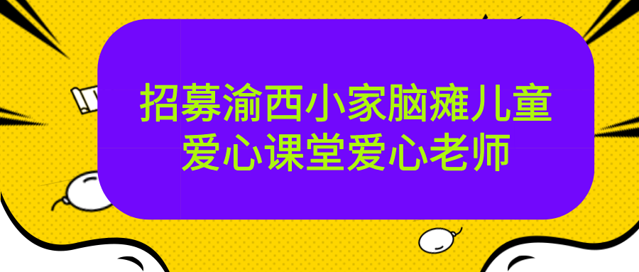 渝西小家爱心课堂活动爱心老师招募。爱心课堂,一是部分满足孩子们的学习需求,促进孩子在认知、语言、理解力等方面的发展;二是创造一个尊重、理解、友爱的集体学习、交流氛围,促进孩子们社会交往等能力的发展;三是陪伴孩子们度过更丰富、有趣的快乐时光。