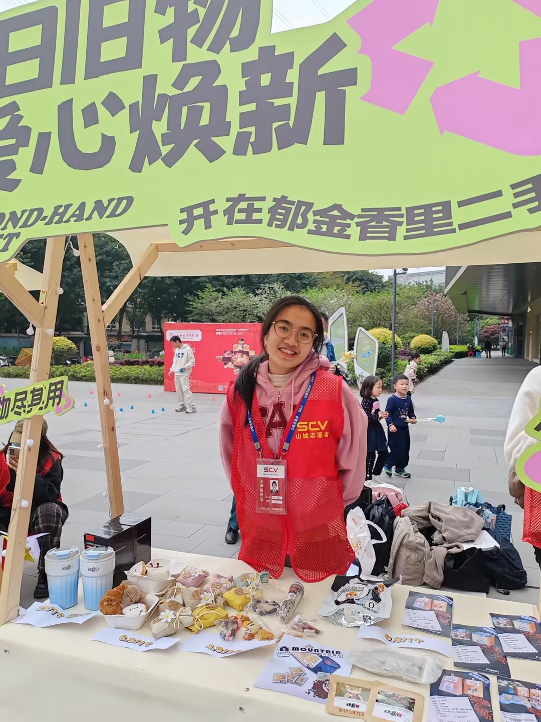 2025年3月8日,冯钰涵参加了渝西小家的妇女节插花活动。那天,她遇到了一位特殊的小女孩——因身体原因无法开口说话,面对陌生人时总是怯生生的。“我悄悄递给她一块自己做的沙琪玛,”冯钰涵回忆道,“她眼睛一下子亮了,捧着点心吃完后,冲我摸了摸肚子,笑得特别甜。”这份小礼物让小女孩逐渐放松,开始主动与她互动。两人一起挑选花枝、修剪枝叶,小女孩用动作和眼神表达喜好,冯钰涵便耐心地配合她的节奏。活动结束时,她们俩捧着手工作品和小女孩的奶奶合影,镜头定格了三张灿烂的笑脸。志愿服务是场“爱的循环”当被问到“为什么要做志愿者”时,冯钰涵的回答很质朴却坚定:“陪伴需要帮助的人,也是在为自己的青春留下美好的记忆。”