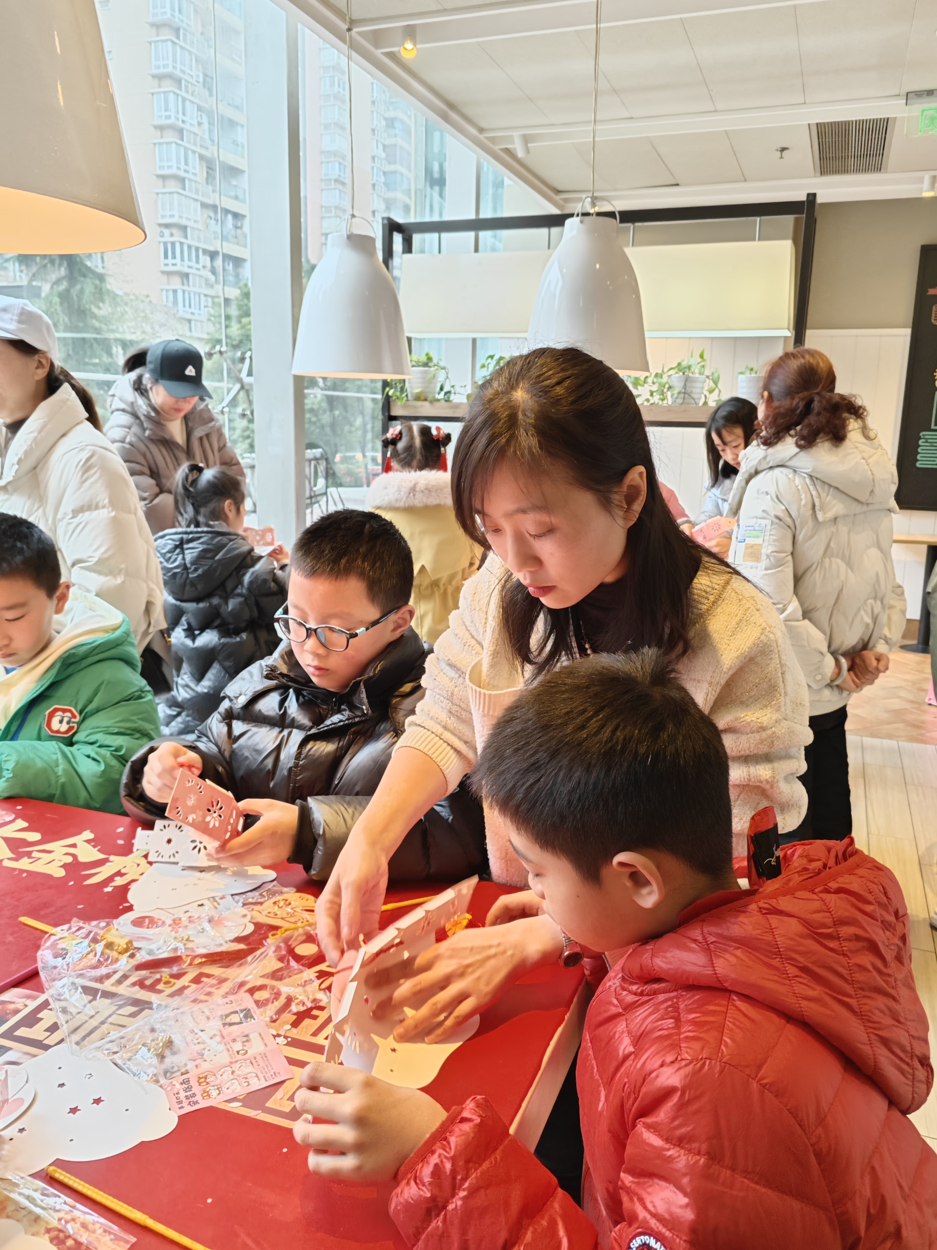 孩子们专心地摆弄着材料,一点一点地观察、尝试直到最后完成;看到自己独立或者和父母合作完成的灯笼,很是欢喜。