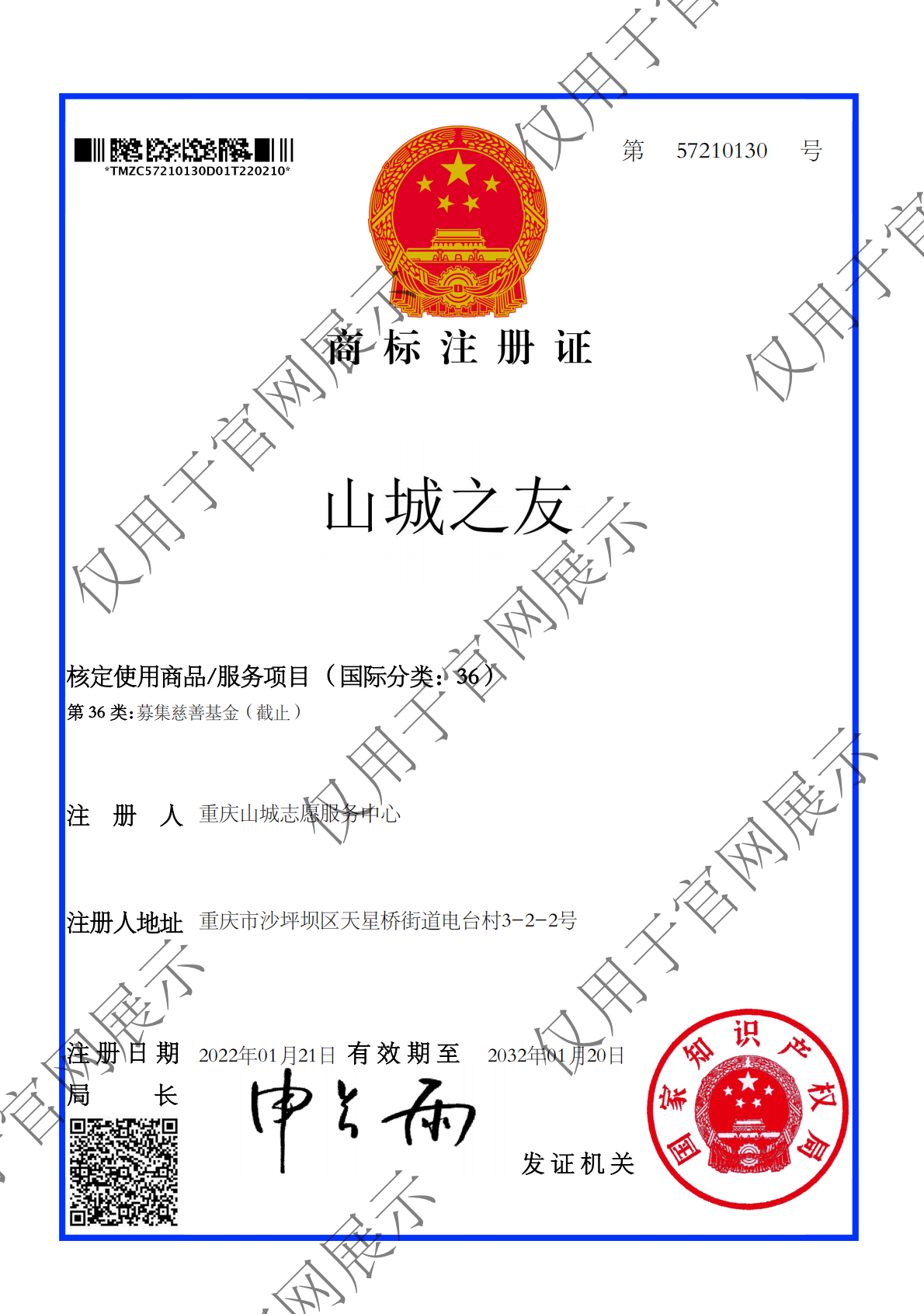山城之友注册商标证书