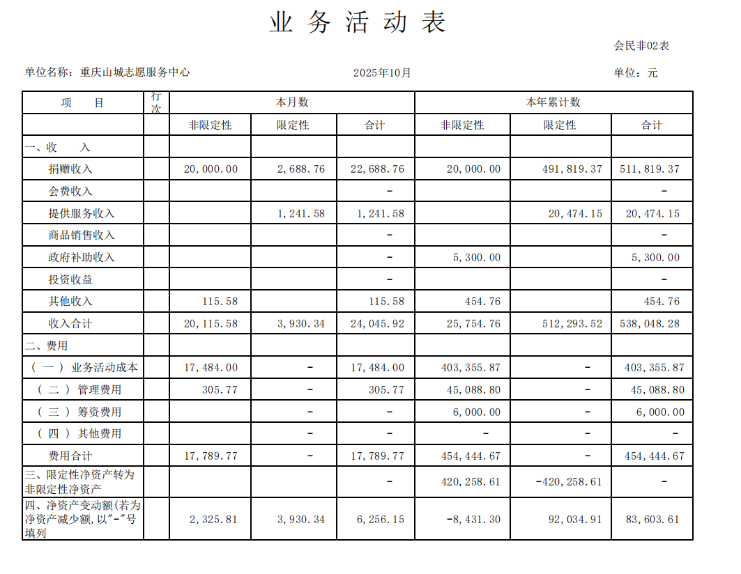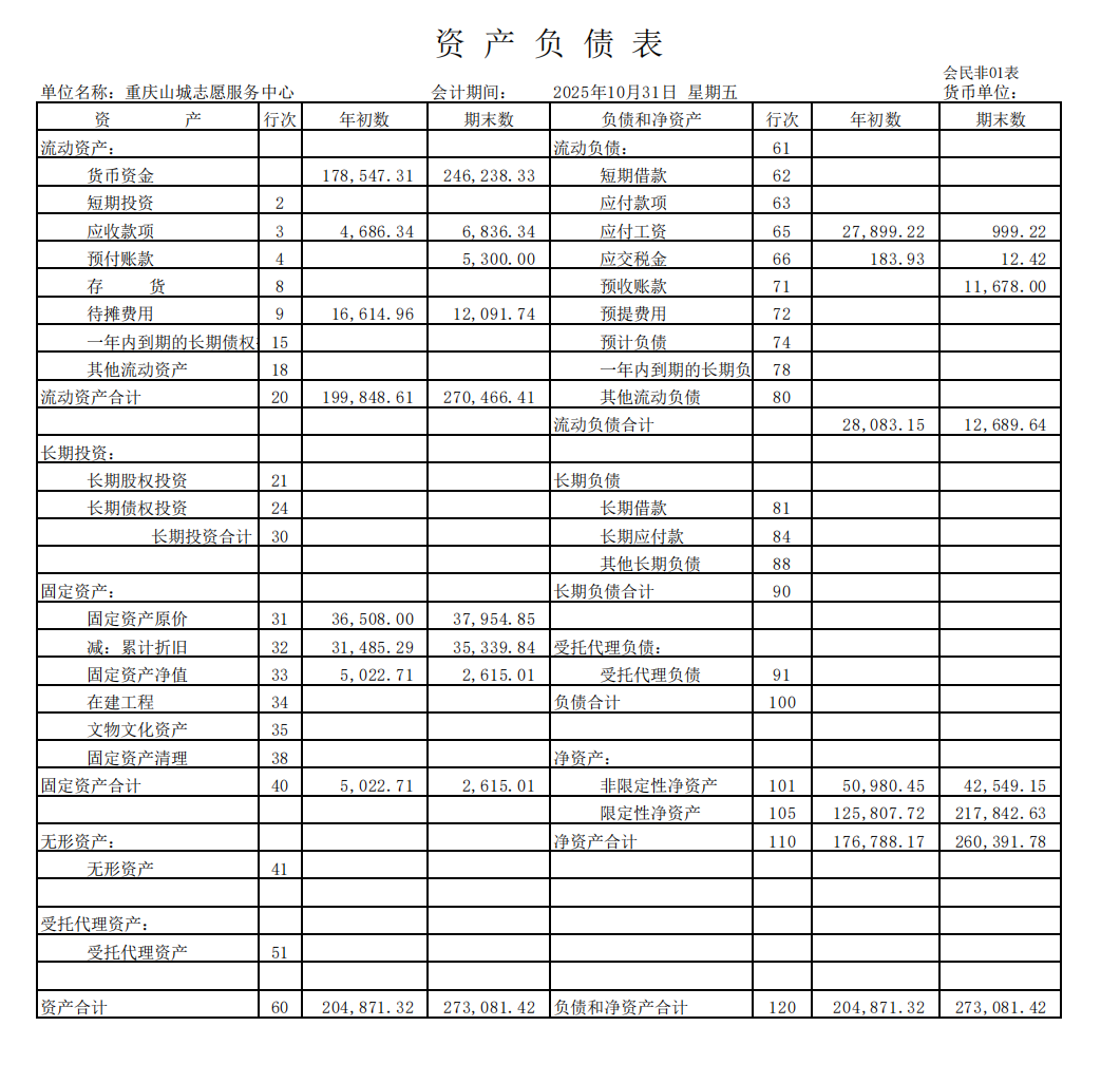 2025年10月财务公示